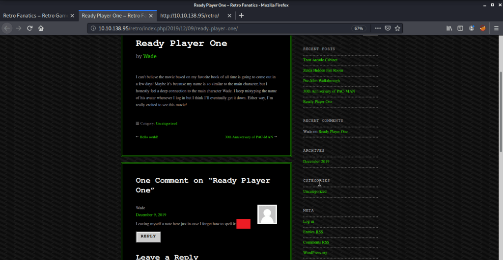#5 Upon clicking the post “Ready Player One”, password was stored as a comment.
