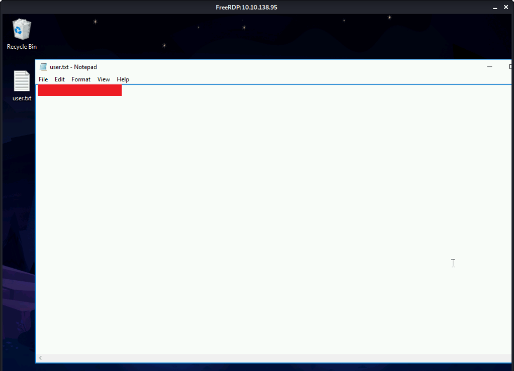 #6 User flag found by logging in using remote desktop client with credentials identified in previous steps.