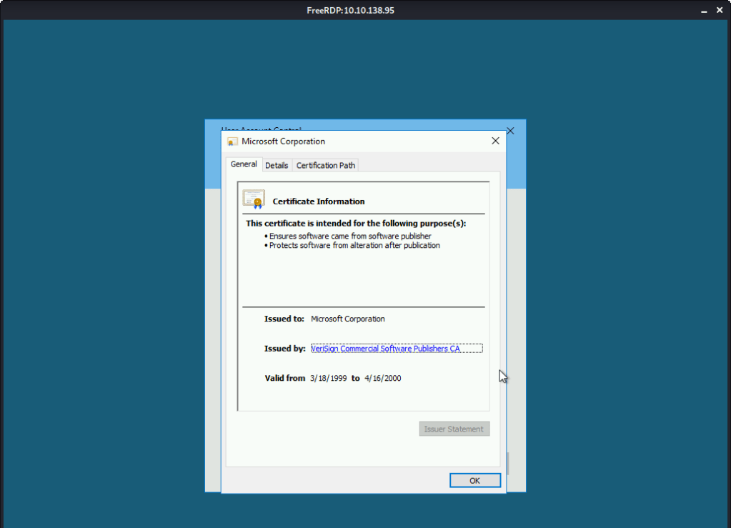 Click the “VeriSign Commercial Software Publishers CA”. This opened a browser window.