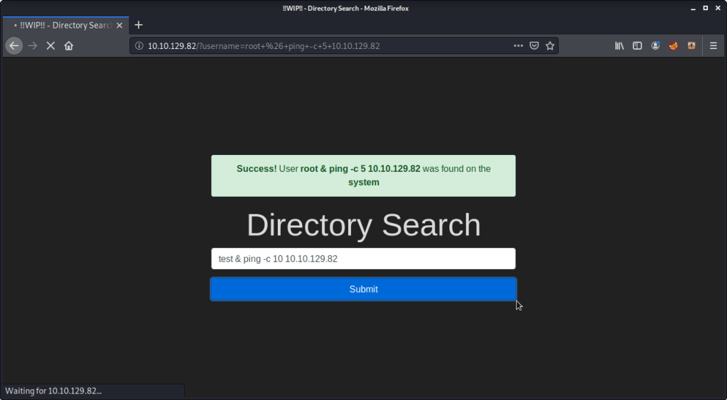 #1 This subtask wants to ping sending 10 packets. While executing this command you will notice that it will take approximately ten seconds to complete although you will not see the output (that why it is called blind command injection because you don’t see the output in the browser). The command is as follows: