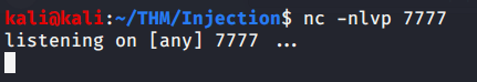 - With nc available, started a netcat listener on port 7777 on attack/local machine.