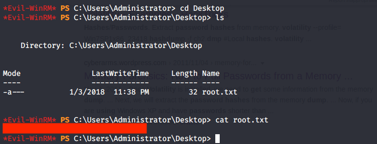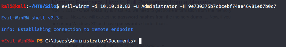 In the initial scan we identified that port 5985 used for Windows remote management was open. After getting Administrator password hash from volatility, used this information to login with Administrator using Evil-WinRM.