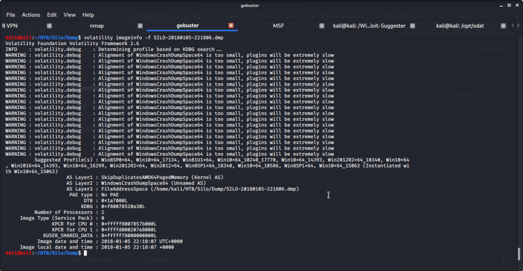 Installed memory analysis tool volatility (sudo apt-get install volatility) to analyze and read the contents of dump file. Firstly, used the “imageinfo” flag with volatility to identify information about the dump. The results revealed the dump/image having profile of system with different variants of Windows 8, Windows 10, Windows 2012 or Windows 2016.