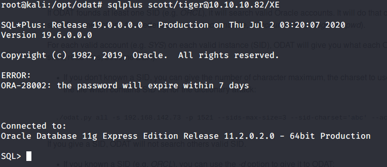 Odat found valid credentials as scott:tiger.