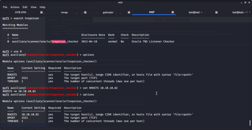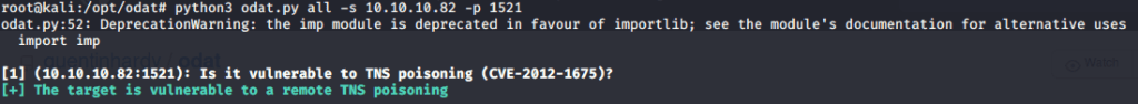 Alternately, TNS poisoning vulnerability can also be checked using Metasploit tnspoison_checker auxiliary module (auxiliary/scanner/oracle/tnspoison_checker).