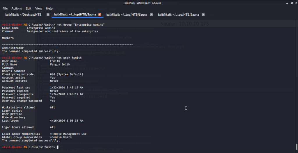The purpose of this blog is to document the steps I took to complete hacking task of HackTheBox (https://www.hackthebox.eu/) machine that included capturing user and root flag of Sauna (https://www.hackthebox.eu/home/machines/profile/229).