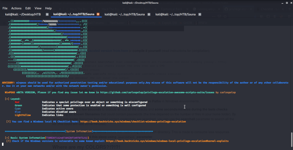 Uploaded winPEAS to check what options are available for privilege escalation from user “fsmith” to Administrator.